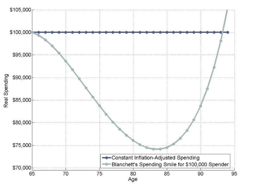 Dit verschijnsel laat zien dat we gedurende de pensioenperiode een ongelijkmatig uitgavenpatroon hebben. Aan het begin geven we relatief veel uit. Daarna zijn de uitgaven een tijd lang lager om vervolgens weer toe te nemen. Al met al dus toch wel handig om te bepalen wat je hebt, wat je wil en uit te zoeken hoe je er later dan ongeveer voor staat. Er zijn genoeg tools die je een handje helpen.